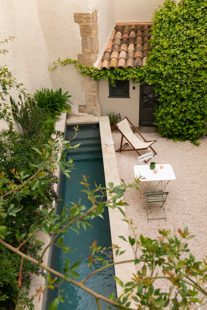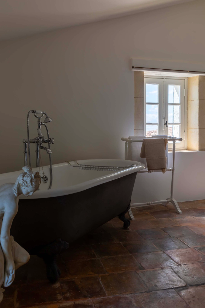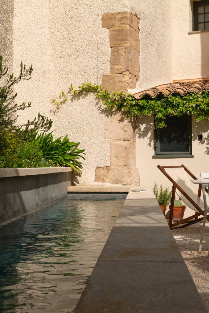 During your stay, you’ll have access to the shaded courtyard and its saltwater pool, perfect for cooling off. On the ground floor of the house, you can enjoy the living room, its library, and its fireplace on long winter evenings.