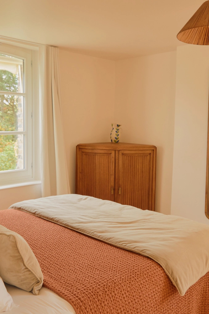Located in Égreville, an hour and a half from Paris, La Prairie offers a lush natural setting, just steps from the Forest of Fontainebleau. Combining natural woodwork, vintage furniture, distinctive wallpaper, and earthy tones, the house exudes an authentic and warm atmosphere. It embodies the spirit of a family home: bright, soothing spaces, an elegant barn for gatherings, cozy and restful bedrooms, and bathrooms with vintage charm. In addition to the 11 rooms and private bathrooms, the house features a heated pool, a padel court, a barbecue, a renovated 100-square-meter barn, and custom experiences: cooking workshops, yoga, foraging, painting, or professional sessions. A simple, welcoming, and harmonious place, designed to provide comfort and serenity from morning to night.