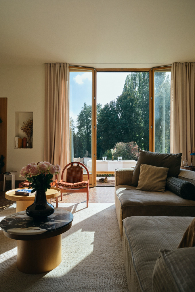 Set in the heart of the Perche Sarthois, just two hours from Paris, and reimagined by the design and architecture studio Hauvette & Madani, Le Moulin embodies a warm, refined spirit — where antique pieces, soft hues and noble materials come together in perfect harmony.”