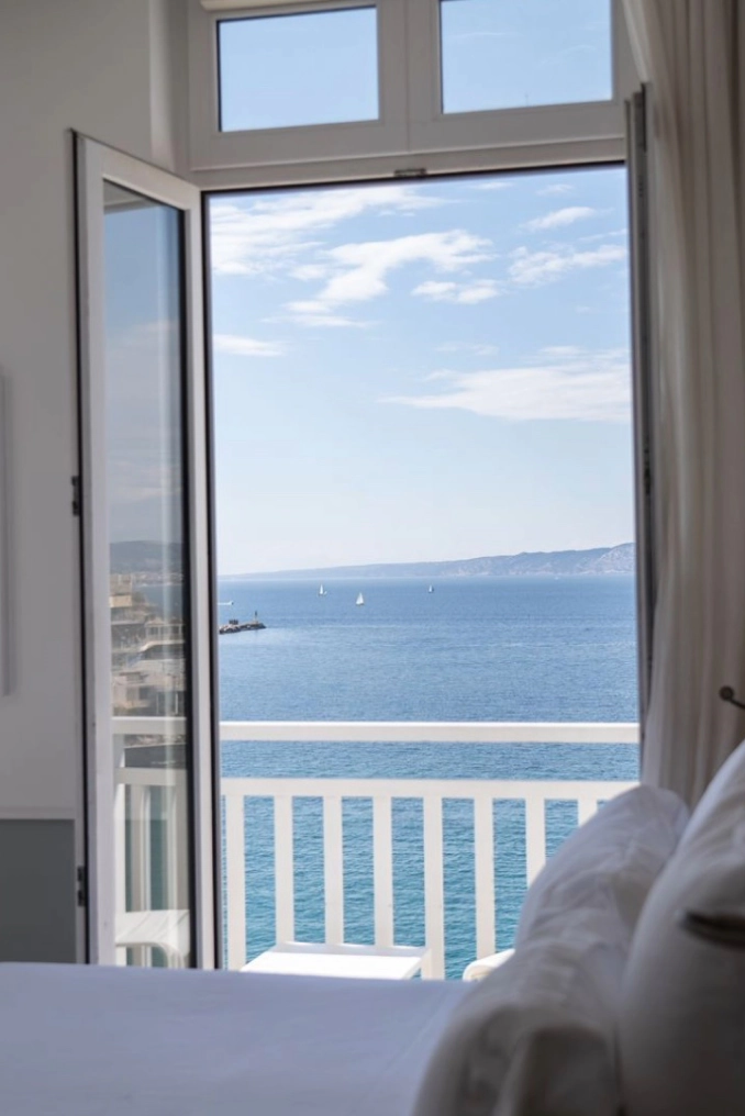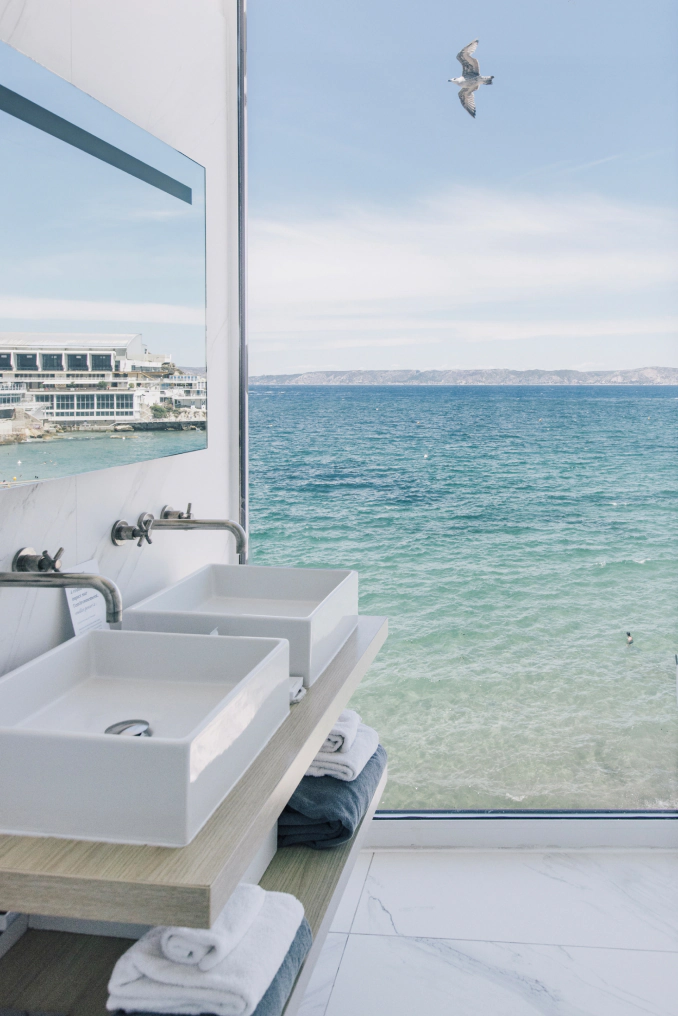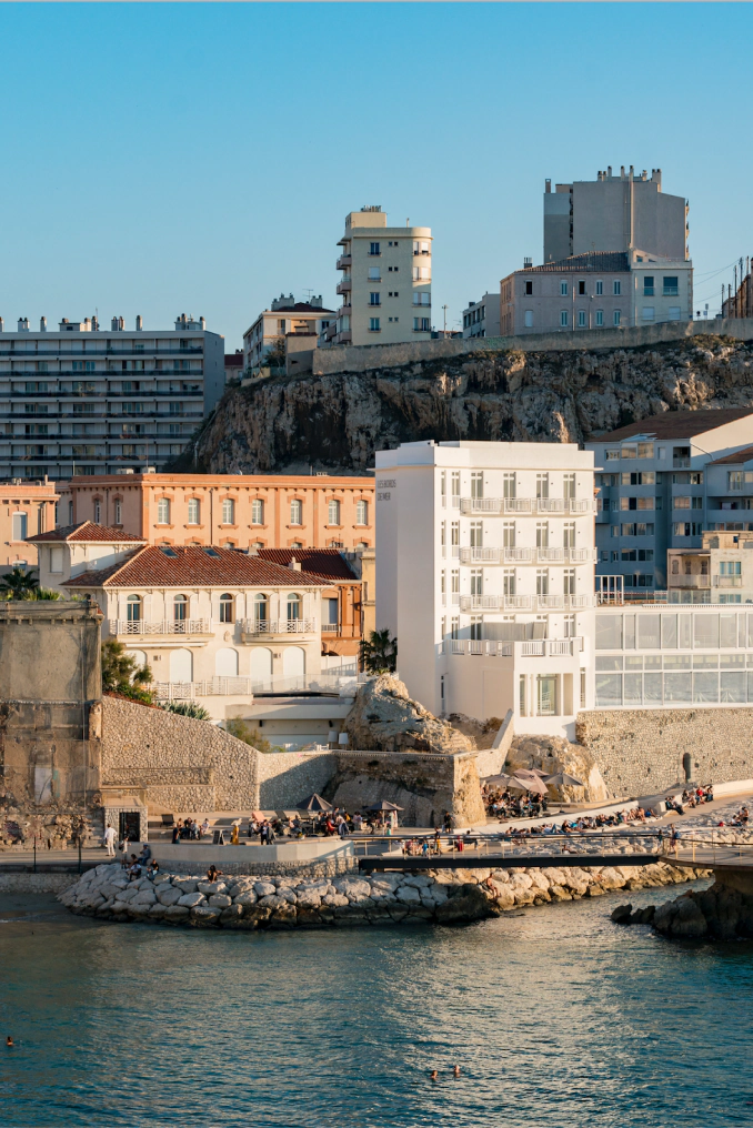 Located on the Corniche Kennedy, Les Bords de Mer literally plunges into the Mediterranean. A reimagined Art Deco hotel, it features a spa carved into the rock, a rooftop with a lap pool, and a Mediterranean restaurant serving seafood-inspired dishes. The quintessential Marseille destination, where solar energy meets the blue horizon and life moves to the rhythm of the sea.