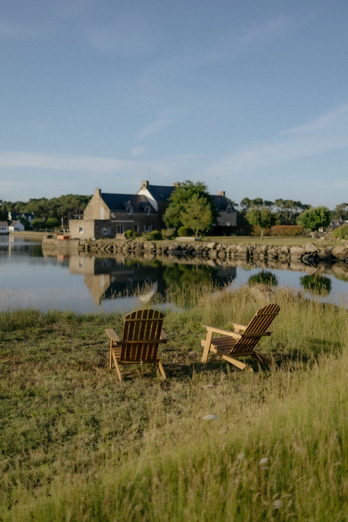 Maison Passage: two houses, three living areas, six bedrooms. Located just a few minutes from La Trinité-sur-Mer on the Morbihan coast, the property offers breathtaking views of the Crac’h River and the soothing rhythm of the tides. Designed for stays and vacations with family or friends, this seaside home at the edge of the world promises moments of togetherness and privacy, while allowing everyone to enjoy their own space. With flexible accommodations (for 2 to 12 people), Maison Passage offers several options: La Maison, the Duplex, and the Atelier.