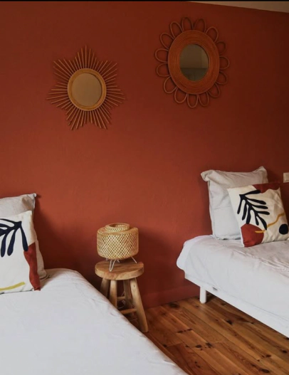 La maison s’articule autour de chambres élégantes et apaisantes, pensées pour offrir intimité et confort à chacun. Certaines sont dotées de leur salle de douche privée, tandis que d’autres accueillent familles ou amis dans une atmosphère douce et conviviale, idéale pour les séjours partagés.