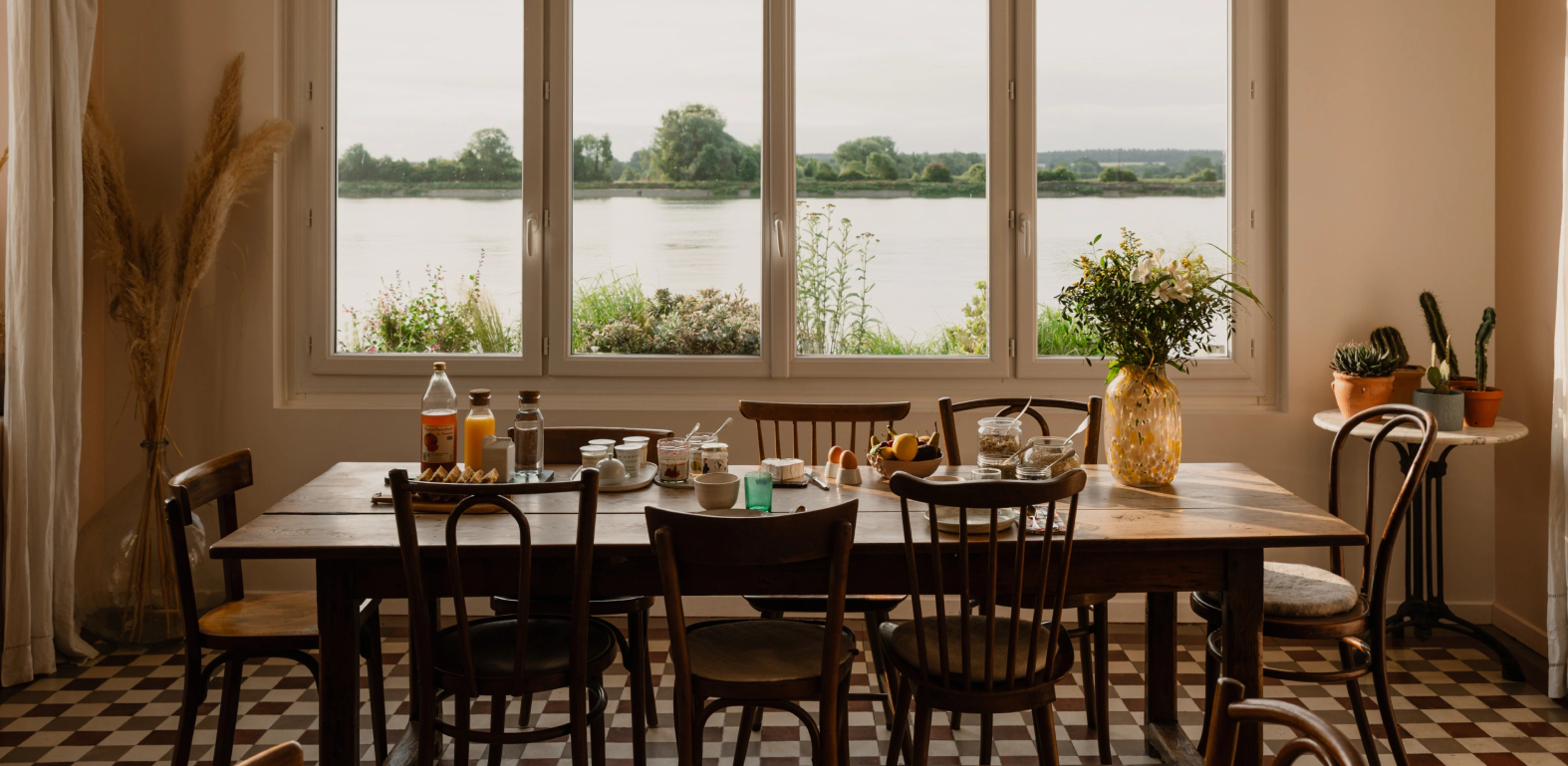 Sur les 5 chambres située dans la maison, 3 d'entres elles offrent une vue en front de Seine. Les chambres Brume et Nid sont de grandes chambres pouvant accueillir 4 et 3 personnes avec une vue sur la Seine. La chambre Amour est une chambre double avec vue Seine et terrasse privée. Deux chambres plus intimistes : Parisienne et Douce seront votre cocon. Enfin la cabane à trois minutes à pied de la maison sera votre maisonnette dans un cadre bucolique toujours avec une vue sur la Seine dernière sa baie vitrée.