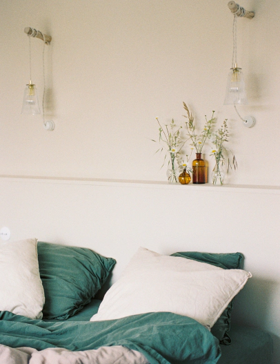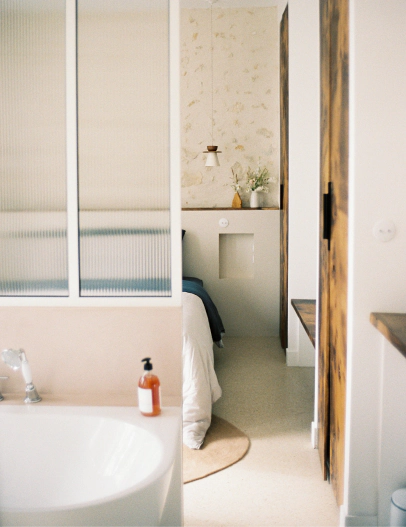 Les trois chambres de la maison ont été conçues pour les couples ou les tribus familiales, avec chacune son style, entre minimalisme et vintage, un équilibre doux pour se sentir bien.