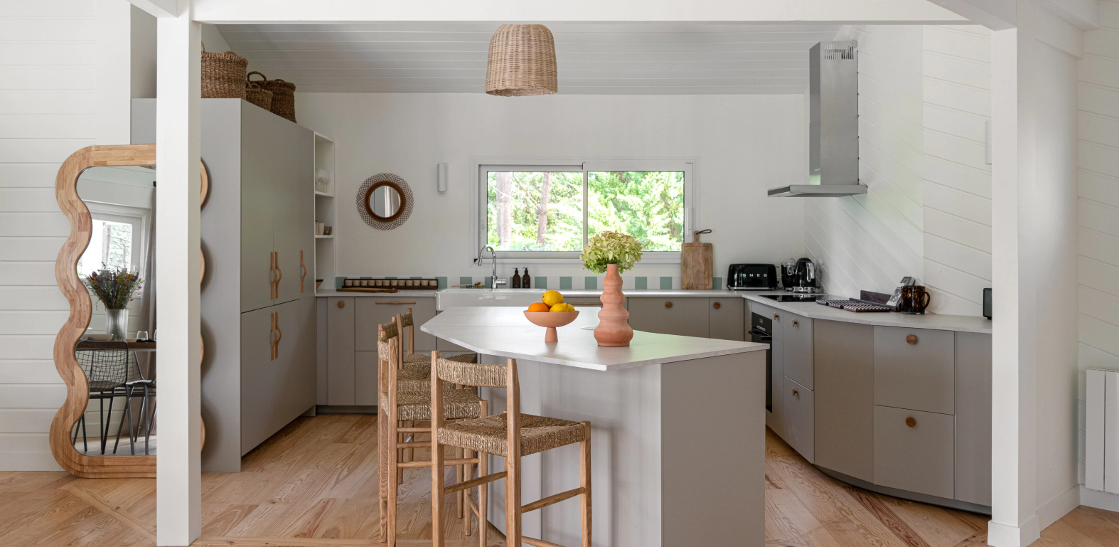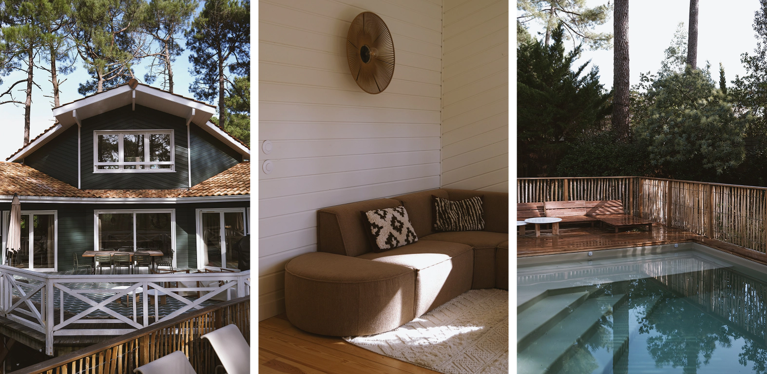 "Mon obsession pendant le projet était de faire en sorte que cette maison coche toutes les cases pour des moments parfaits en tribu : 6 chambres et 15 couchages, une grande cuisine ouverte pour cuisiner tous ensemble, 4 salons pour varier les ambiances, une grande piscine chauffée avec vue sur les pins, 3 terrasses pour profiter de chaque moment de la journée… Et bien sûr, un terrain de pétanque pour les apéros à rallonge."