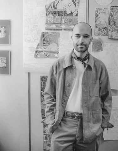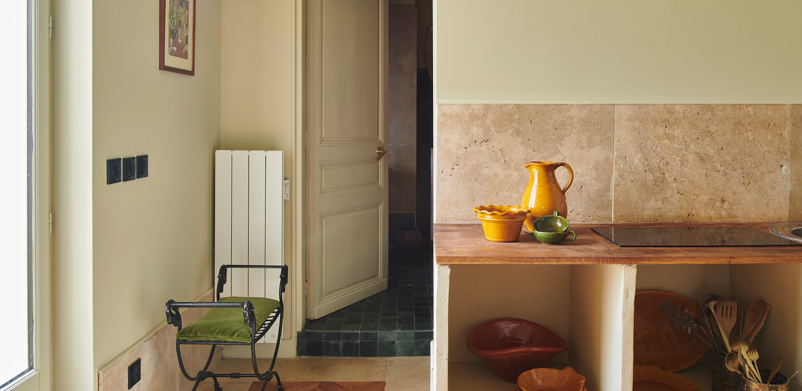 "La maison est l'ancien atelier de l'artiste Victor Cadene. Décoré avec soin de ses fresques et de ses oeuvres sur papier. Chaque élément a été conçu spécialement pour cet espace : des tapis du salon aux motifs textiles."