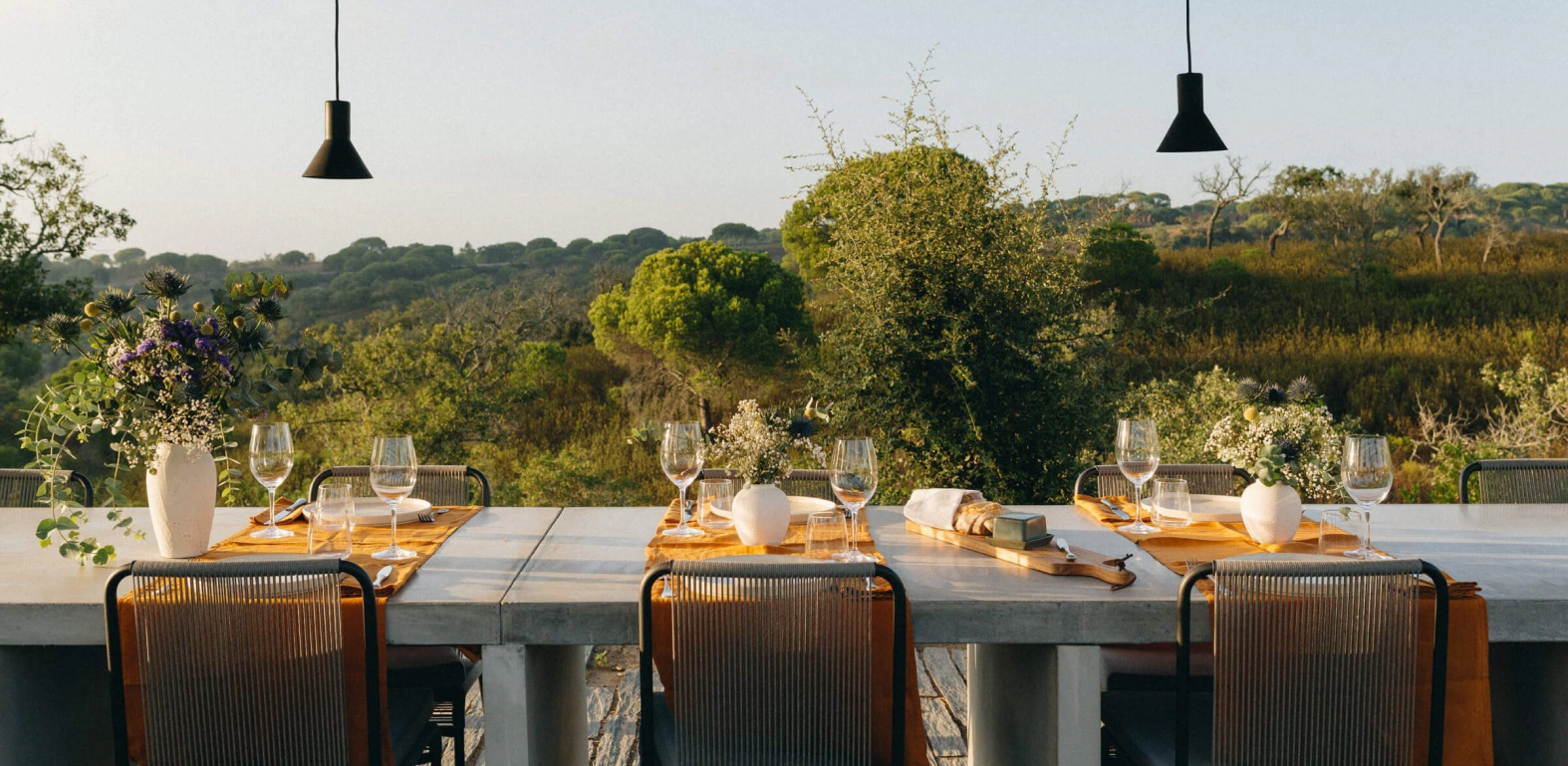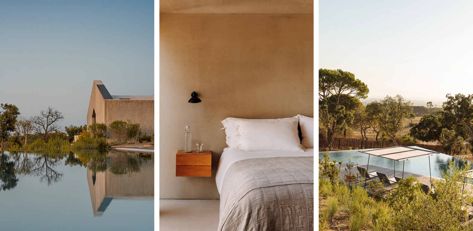 À travers la vue de son architecture majestueuse, le toucher de matériaux organiques et nobles dans son design intérieur, l’odorat d’une fragrance capturant les senteurs des arbres environnants et de l’océan dans les maisons, le goût de sa gastronomie « de la ferme à la table », et les sons de la nature vivante de l’Alentejo.