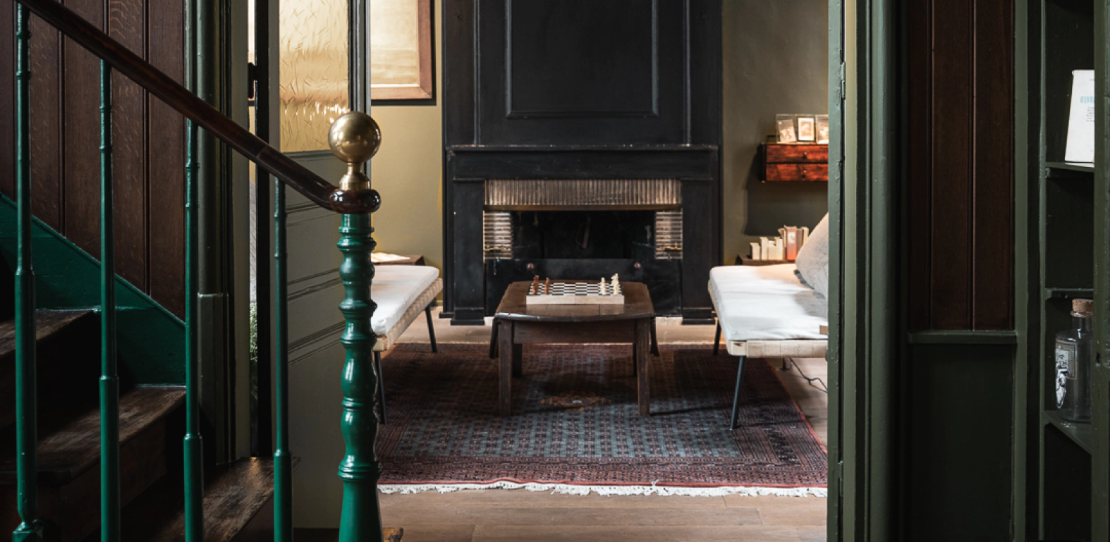 "PieuX est une maison e ville des années 1800 située au pied des remparts, au cœur de Montreuil-sur-Mer, habitée et heureuse de vous accueillir.Avec des lieux d’échange et de vie commune : le salon, la salle de petit-déjeuner et le jardin d’hiver. Le salon : âtre de la maison, invite à déconnecter devant la cheminée d’époque ou partager un café autour d’un jeu d’échecs ; la salle de petit-déjeuner : comme un petit bistrot matinal, bienveillant et lumineux ; le jardin d’hiver : lieu de lumière, de verdure et de feu avec son âtre en béton maçonné et sa hotte d’acier brut."